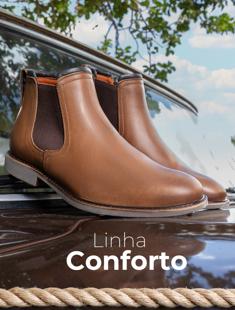 Botina Masculina Confort em Couro Fóssil - CaféVer Produto